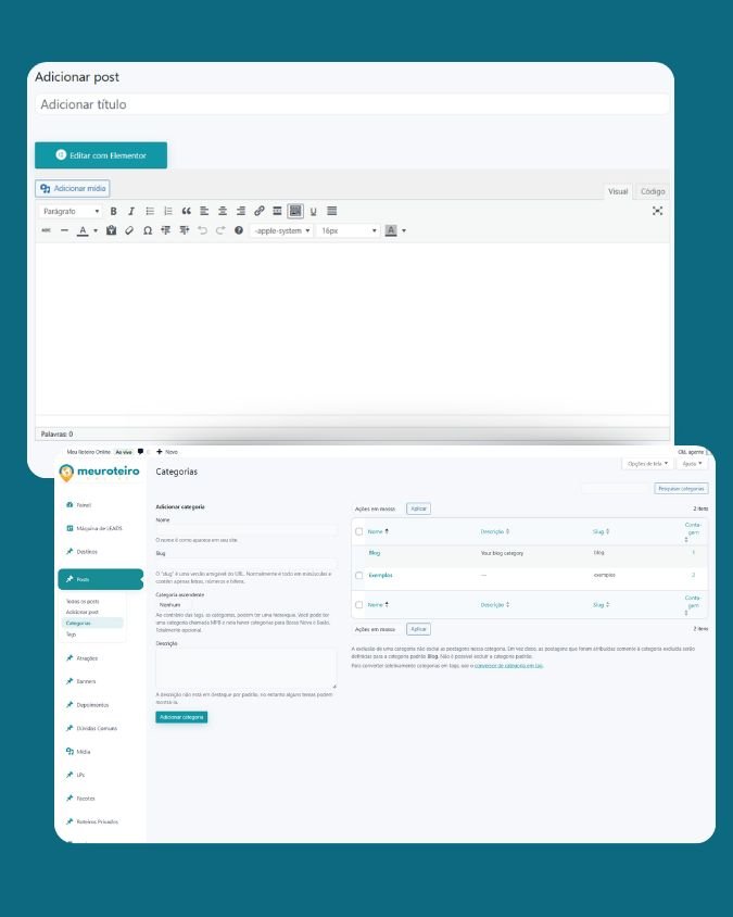 Você dá forma ao seu site, editando a aparência dele pelo painel de controle.